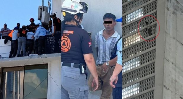 MONTERREY, Nuevo León. - Luego de que presuntamente tratara de lanzarse de un edificio del centro de la ciudad, un hombre fue rescatado y detenido por oficiales de la Policía de Monterrey, tras 12 horas de labores convencimiento, en coordinación con los diversos cuerpos de auxilio.