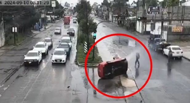 En un video publicado en redes sociales se ve como el automóvil transita sobre la calle Lomas del Valle, frente al fraccionamiento del mismo nombre, para incorporarse a la 24 Sur; al cruzar el camellón, el vehículo cruza lo que parece un charco, pero se trata de una zanja inundada. Su llanta se hunde en el hoyo y el impacto provoca que el coche se vuelque.