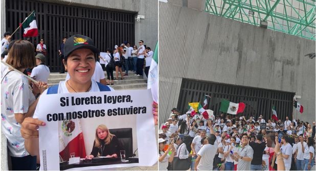 Monterrey.- "Ya llegó, ya está aquí, esa que vendió al país", "Loretta incongruente le fallaste a la gente" y "Loretta vendida, no eres bienvenida", trabajadores del Poder Judicial Federal de Nuevo León gritaron a la ministra Loretta Ortiz.