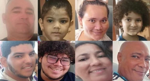 Las autoridades identificaron a las personas como Kimberlin, de 4 años de edad; Micher, de 6; Dairon, de 17; Heily, de 25; Onel, de 34; Yereny, de 43; Yosvany, de 53 y Micher, de 76.