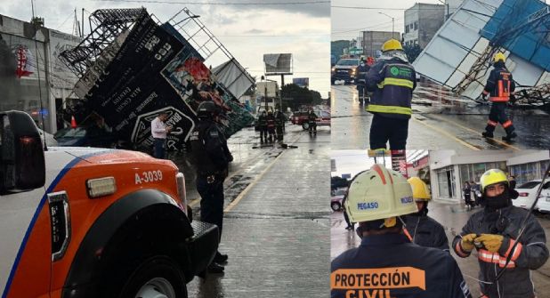 En la 31 Poniente, a la altura del Colegio Americano, las fuertes rachas de viento que alcanzaron los 45 kilómetros por hora derrumbaron la estructura de un espectacular y las precipitaciones dejaron automóviles varados durante varias horas. El espectacular cayó sobre varios automóviles de un negocio de venta de automotores, por lo que no pérdidas humanas; la avenida fue cerrada a la circulación para que los cuerpos de emergencia retiraran la estructura.