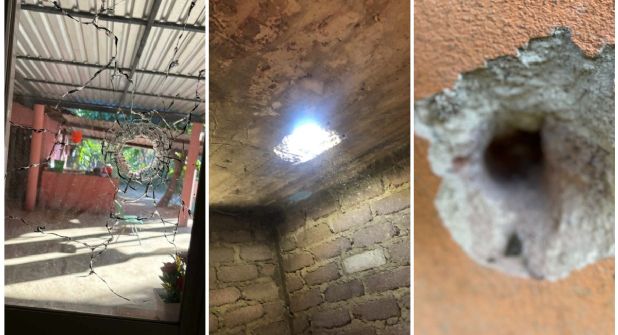 En fotografías compartidas por los habitantes, se observan los daños que dejaron los explosivos en techos de concreto reforzado con varillas. En otras imágenes se ven orificios provocados por balas de fusiles de asalto, incluidos disparos de Barrett calibre .50, en paredes, ventanas y techumbres.