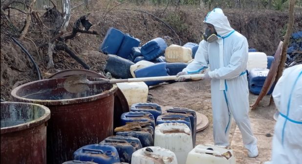 Elementos de la Guardia Nacional (GN) lograron el aseguramiento de dos áreas de concentración de materiales diversos para la elaboración de metanfetaminas en Sinaloa.