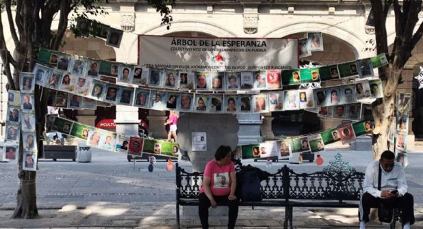 En el zócalo de Puebla, junto a los adornos navideños está “El Árbol de la Esperanza” colocado por el colectivo Voz de los Desaparecidos, el cual se coloca año con año. Este, es un tendedero con alrededor de 200 boletines de búsqueda y arriba de ellos está la siguiente frase: “otra navidad sin ellos, luchamos contra el olvido quienes los buscamos”.