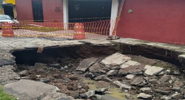 Puebla, Puebla.- Tras las lluvias que se han registrado en Puebla, se reportó la formación de un mega socavón en la calle Guadalupe Victoria, lo que ha despertado la preocupación y temor de los poblanos, ya que el hundimiento se ubica muy cerca de varias viviendas y advierten que la situación podría empeorar debido a las lluvias que continúan registrándose en la capital poblana.