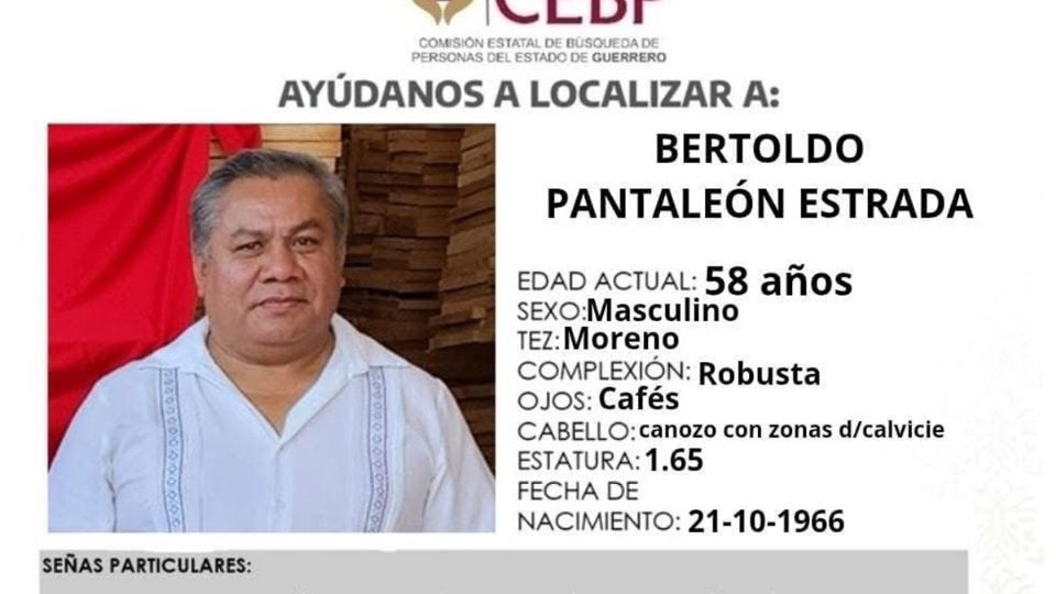 El padre Bertoldo era originario de Cocula, Guerrero; tenía 58 años, estaba a 15 días de cumplir 59, medía 1.65 metros, era de complexión robusta y fue visto por última vez en Azcala, el 4 de octubre pasado, de acuerdo con la ficha de búsqueda emitida por la Comisión Estatal de Búsqueda de Personas de Guerrero. Vestía guayabera azul rey con franjas blancas verticales, pantalón de vestir oscuro y hiaraches.