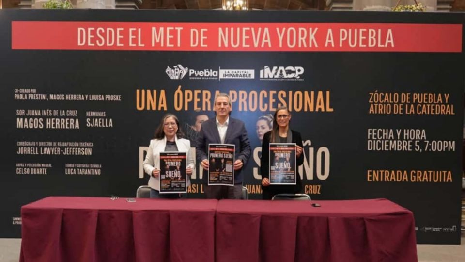 PUEBLA, Puebla.- Con el propósito de continuar acercando el arte y la cultura a todas y todos los poblanos, el presidente municipal, Pepe Chedraui Budib, presentó la ópera procesional “Primero Sueño”, una adaptación musical creada por Magos Herrera y Paola Prestini, inspirada en el célebre poema de Sor Juana Inés de la Cruz.