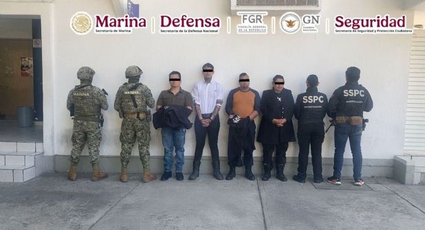 Tras trabajos de investigación, elementos de la Secretaría de Seguridad y Protección Ciudadana (SSPC), Fiscalía General de la República (FGR) y Secretaría de Marina (Semar) junto con Secretaría de la Defensa Nacional y Guardia Nacional cumplimentaron órdenes de aprehensión contra Hugo Aldair Sánchez González, “El Tuki”; Abiham Bathuel Orendain Martínez, “El Dire”; Rafaela Serrano Mariscal, también “El Dire”; y Edgar Sígala Cantor, “Pollo”.