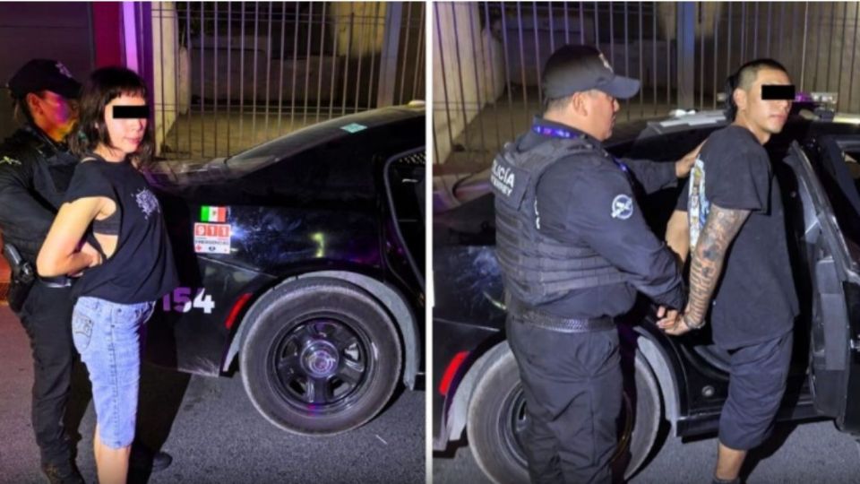 Monterrey, NL.— Una pareja de jóvenes fue detenida durante la madrugada de este jueves luego de ser sorprendida mientras realizaba pintas con aerosol en una pared del Centro de Monterrey.
