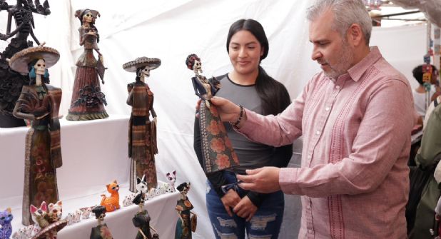 El gobernador explicó que las catrinas son elaboradas por manos de personas artesanas originarias de Capula, una tenencia de Morelia donde existen más de 700 talleres tradicionales que preservan las técnicas y saberes que se heredan de generación en generación. Además, en estos lugares también crean otros trabajos de alfarería punteada y barro, con diseños únicos que los distinguen de otras regiones del país.