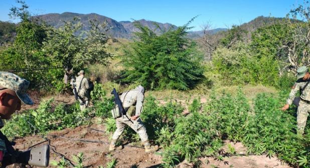Personal del Ejército Mexicano, en coordinación con la Guardia Nacional, Secretaría de Marina, Secretaría de Seguridad y Protección Ciudadana, Fiscalía General de la República, Fiscalía General del Estado y la Secretaría de Seguridad Pública de Sinaloa, localizó y destruyó este lunes un plantío de marihuana en la zona rural del municipio de Culiacán.