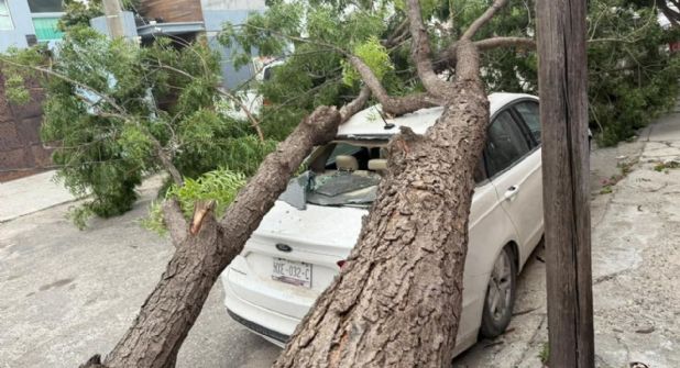 Los fuertes vientos derribaron árboles y estructuras en distintos puntos de la ciudad. En el Paseo Méndez, las rachas tumbaron varios árboles y adornos navideños, generando riesgos para peatones y automovilistas. En algunos casos, los árboles caídos impactaron automóviles que se encontraban estacionados o en circulación, ocasionando daños materiales.