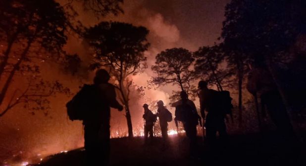 “Nosotros estuvimos trabajando toda la noche aquí en el Bosque, pero debido a la falta de luz solo trabajamos para que no avance mas el fuego, pero si te metes corres el riesgo de que una bola de fuego te atrape, a pesar de que traemos equipo para soportar altas temperaturas esto no es suficiente porque la radiación de la misma lumbre te puede inmolar” explicó Jonathan Cervantes, uno de los 214 combatientes.