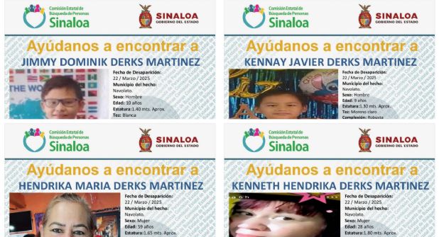 Según informes preliminares, los familiares fueron vistos por última vez el pasado 22 de marzo en su domicilio, ubicado en la colonia Centro de Navolato.