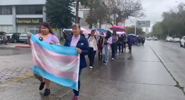 Mujeres trans de Baja California se reunieron en el Centro Cultural Tijuana (Cecut) y marcharon a la garita internacional con San Ysidro en el marco del Día Internacional de la Visibilidad Trans.