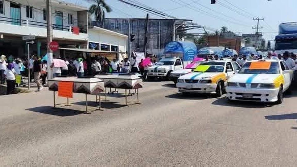 La manifestación, que comenzó a las 9:00 de la mañana, colapsó la circulación en uno de los accesos más importantes del puerto. Decenas de taxis colectivos, camionetas y vehículos de rutas alimentadoras bloquearon el paso, mientras los choferes exigían mayores condiciones de seguridad, así como el fin de las extorsiones y asesinatos que han afectado al gremio. Para visibilizar su reclamo, colocaron tres féretros sobre el asfalto, en señal de luto por sus compañeros caídos.