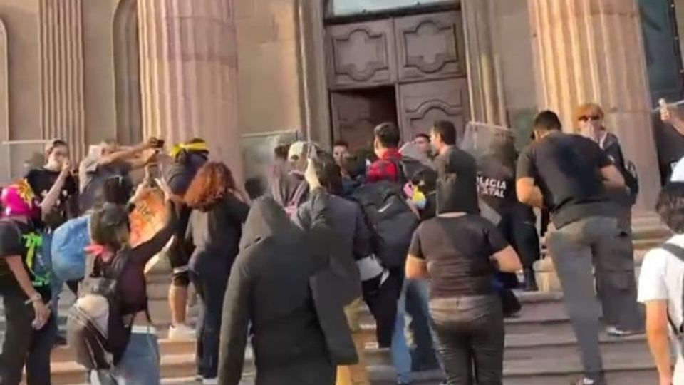 “El hombre, identificado como Luis N, de 38 años de edad, fue detenido por la agresión a cuatro oficiales de Fuerza Civil, así como la realizaron pintas y otros daños a las instalaciones y mobiliario del Palacio de Gobierno, mientras realizaban una presunta manifestación”, añade la información oficial.