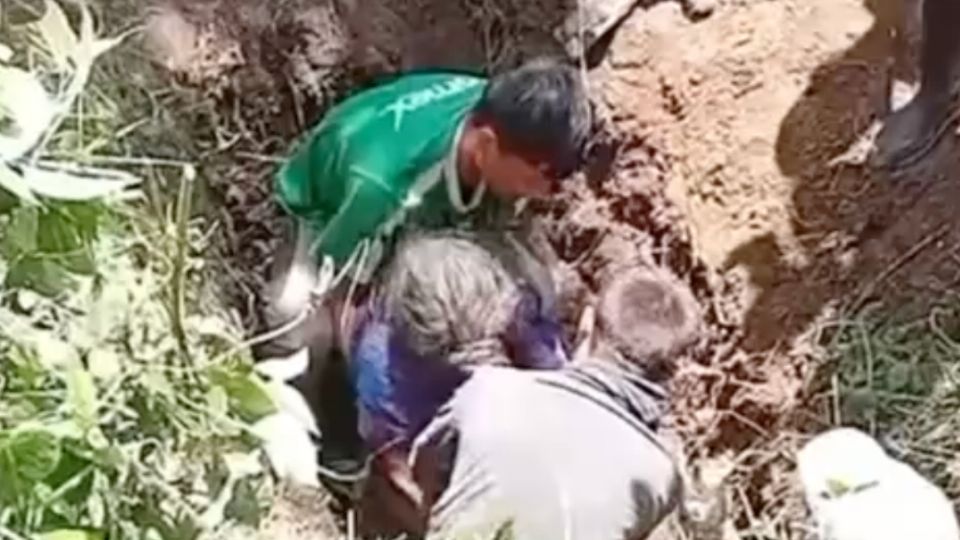 En un video que los propios habitantes compartieron a través de redes sociales, se muestra cómo varios hombres descienden a lo que denominan un pozo y, con mucho esfuerzo, logran rescatar a la mujer, cuyo estado de salud es delicado.