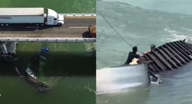 Durante la madrugada de este jueves, un tráiler que transportaba diversos productos abarrotes, entre ellos botellas de salsa catsup, tuvo un accidente vial cuando pasaba por un puente que cruza el río Samaria, cayendo al agua y quedando totalmente sumergido. En el vehículo viajaban 2 personas.