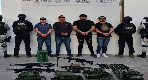 Además de Barraza Acosta, fueron arrestados Noé Moreno Montes, alias “Pinpon”, de 27 años; Jesús Iván Robles Meraz, de 29; y Luis Antonio Ibarra Payán, de 31.