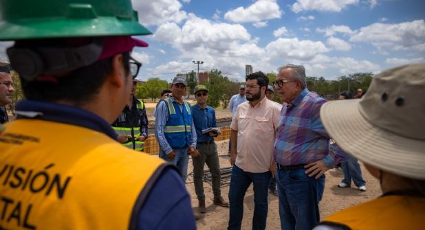 Asimismo, revisó el desarrollo de construcción del colector pluvial, de 940 metros de longitud, que desfogará el agua de lluvias evitando inundaciones en el sector.