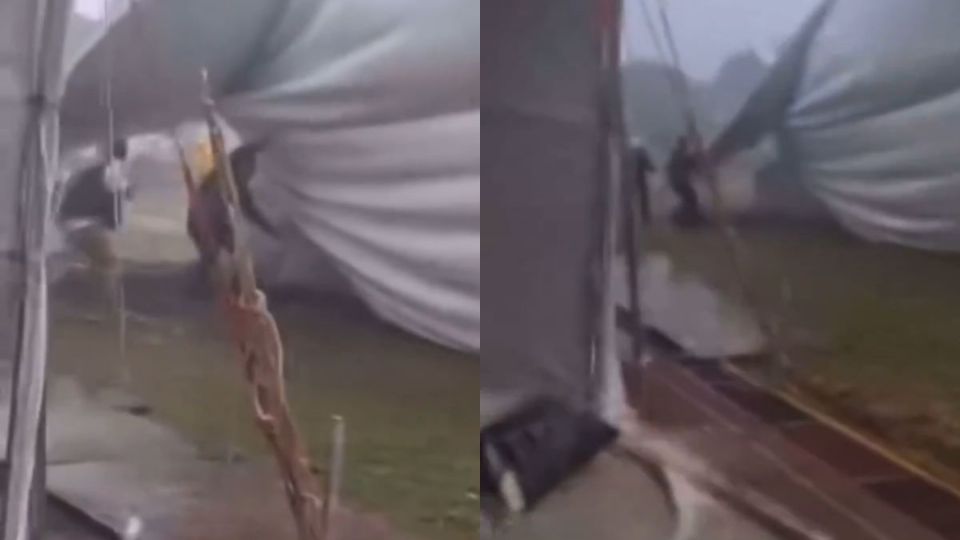 Las fuertes ráfagas de viento y una tromba, provocó la caída de una la lona y la estructura que se encontraba lista para la presentación musical.
