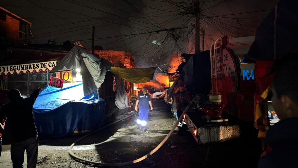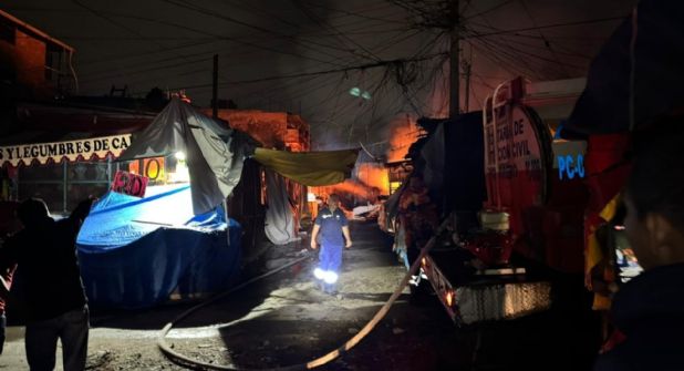 Esta madrugada al menos 15 locales comerciales del mercado Baltazar Leyva Mancilla fueron consumidos por el fuego. Esta es la segunda vez que ocurre un siniestro como este en las inmediaciones de esa central de abastos, hasta el momento no se reportan lesionados.