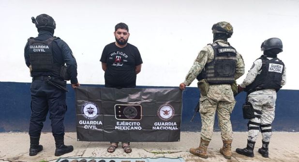 Morelia.– Elementos de fuerzas estatales y federales detuvieron en una zona rural de Apatzingán a un sujeto identificado como El Talibán, considerado el principal operador de César Alejandro Sepúlveda Arellano, El Botox, líder regional del Cártel Michoacán Nueva Generación (CMNG), brazo delictivo formado por Los Viagras y el Cártel Jalisco Nueva Generación.