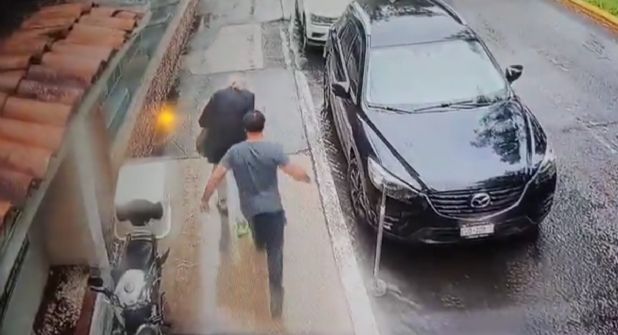 Genaro, adulto mayor en situación de calle en Morelia, apresura el paso con visible angustia mientras es seguido de cerca por un sujeto corpulento, de entre 30 y 40 años, quien con una zancadilla corta su paso y lo hace caer a la banqueta, y en el impacto las bolsas que portaba salen lanzadas. Tras esto, el agresor regresa sobre sus pasos con calma, alejándose de su víctima.