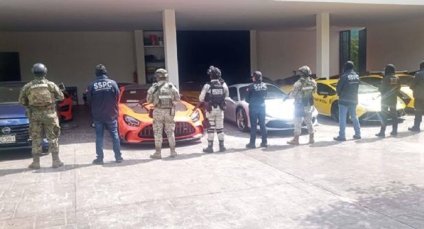 El cateo, realizado este martes 8 de julio y encabezado por elementos de la Guardia Nacional, el Ejército mexicano, la Marina, la Fiscalía General de la República y la Secretaría de Seguridad y Protección Ciudadana, derivó en el aseguramiento de 14 vehículos de lujo, así como laptops, tablets, celulares y otros dispositivos electrónicos.