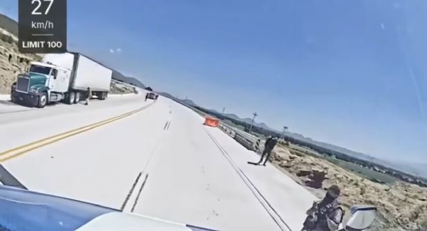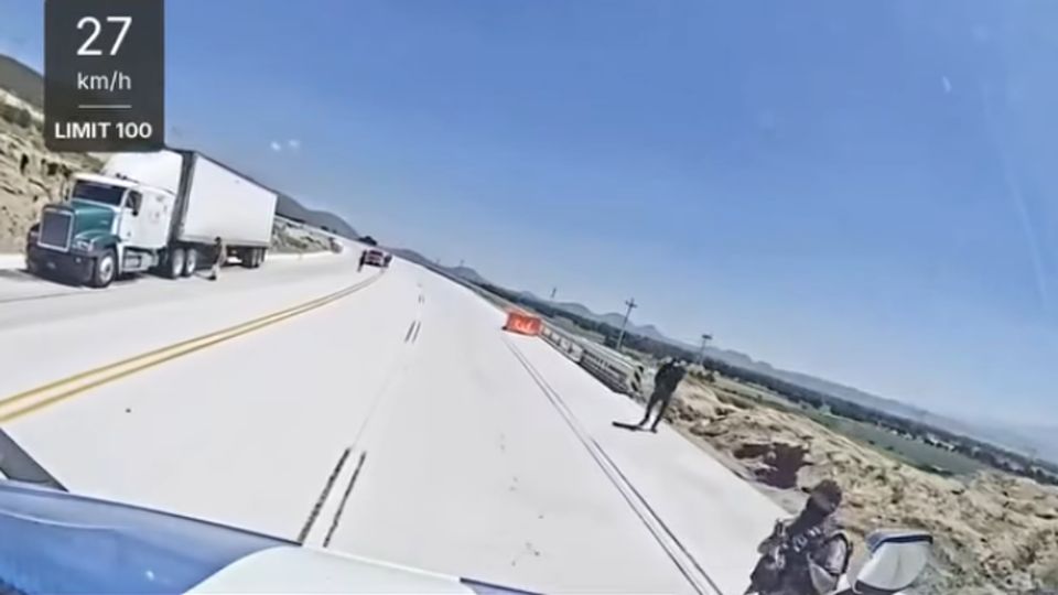 El intento de robo fue grabado por una cámara instalada en uno de los vehículos. En el video se observa cómo cinco sujetos armados detienen el tráiler, bajan al conductor y revisan el interior en busca de objetos de valor.
