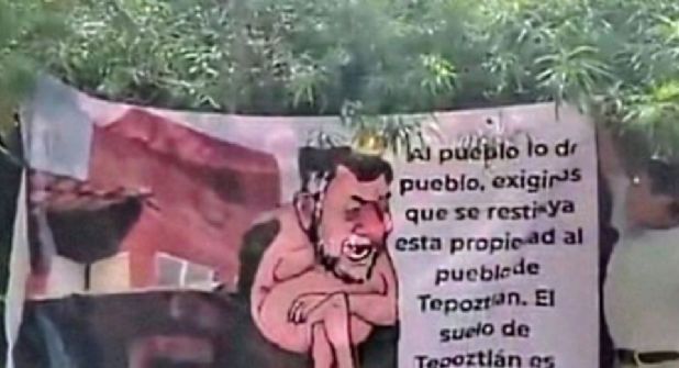 Durante la protesta, varias personas sostenían pancartas en las que señalaban que el senador los estaba despojando de bienes comunales. Además, exhibieron una manta de gran tamaño en la que aparecía Fernández Noroña semidesnudo, acompañada de la leyenda: “Al pueblo lo del pueblo, exigimos que se restituya esta propiedad al pueblo de Tepoztlán. El suelo de Tepoztlán es del pueblo”, junto con una fotografía de la vivienda.