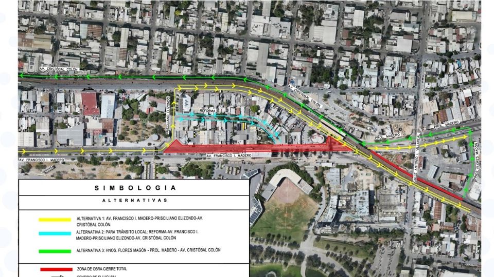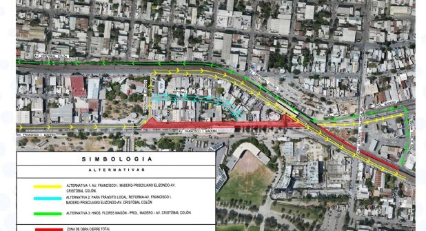 Quienes se dirijan al puente Guadalupe podrán continuar por Colón hasta la avenida Benito Juárez; los que viajen por Constitución o de Guadalupe y pretendan tomar Colón, deberán desviarse por la calle Hermanos Flores Magón al norte, luego por Prolongación Madero hacia el poniente hasta Colón.