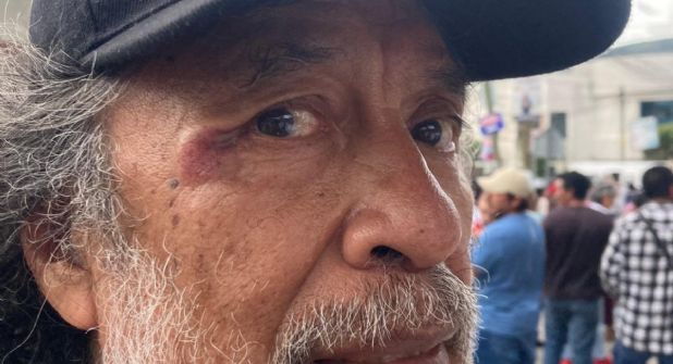 “Yo iba a salir, este tipo me pegó y me empezó a empujar y bueno, yo también le respondí pues hay que decirle nos dimos unos manotazos ahí pero, ya al último el tipo me aventó, pues mide como 1.80 y yo soy chaparrón. Pero me aventó la silla directo a la cara con una fuerza pues está muy fuerte el muchacho, yo alcancé a desviarla y me pegó en el pómulo y un ‘poquito’ en el ojo”, expresó Sergio Ocampo, corresponsal de La Jornada.