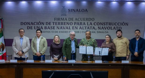 CULIACÁN, Sinaloa.- Para concretar el proyecto de la instalación de un Sector Naval en Nuevo Altata, en el municipio de Navolato, el gobernador Rubén Rocha Moya signó un acuerdo de donación de un predio con el comandante de la Cuarta Región Naval, vicealmirante José Daniel Reséndiz Sandoval, lo cual vendrá a dar mayor seguridad y confianza tanto a residentes como visitantes de este destino turístico, con la presencia permanente de mil 100 elementos de la Secretaría de Marina.