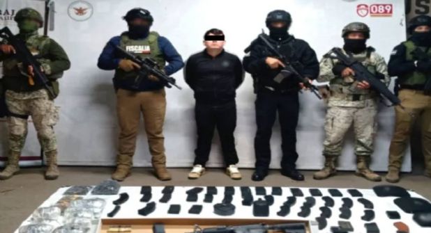Como parte de la “Operación Frontera Norte” que lleva a cabo el Gabinete de Seguridad, se detuvo a una persona, en Mexicali, Baja California, y se le aseguró un arma larga, 43 cargadores, 2,410 cartuchos, un aditamento lanzagranadas, dos cintas eslabonadas, cinco placas balísticas y un vehículo.