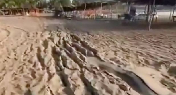 Turistas que se encuentran vacacionando en la playa Barra Vieja grabaron cómo se formaron enormes grietas sobre la arena, lo que indica el poder del movimiento telúrico que se sintió en Acapulco.