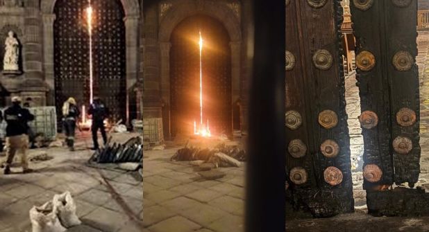La Arquidiócesis de Puebla comunicó que los hechos ocurrieron alrededor de las 2:00 de la madrugada. De acuerdo con su reporte, dos personas ingresaron al atrio del recinto por el lado que colinda con el Zócalo y prendieron fuego a una de las puertas.