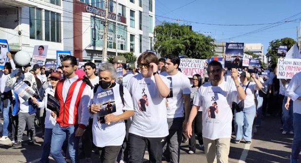 Cientos de personas se dieron cita para unirse al reclamo de justicia al gobernador Rubén Rocha Moya por la muerte de Fernando Alan Arce, quien perdió la vida en medio del fuego cruzado de militares, quienes seguían a otro vehículo el pasado 13 de enero.