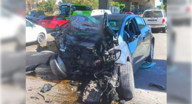 El vehículo cuyo conductor resultó muerto porta placas del estado de Puebla UCD-003-A y corresponden a un KIA Forte color gris. El impacto del accidente dejó al automóvil destruido en la parte del motor