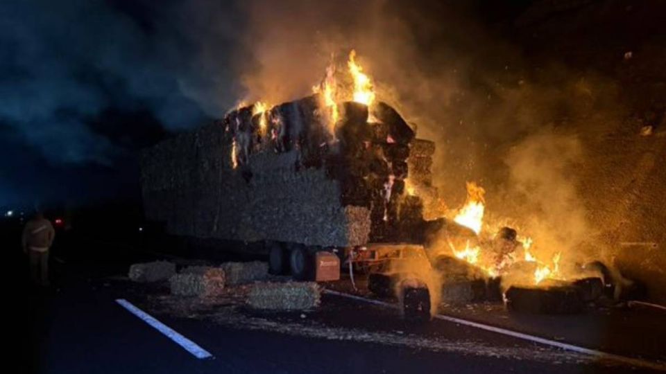La unidad, que transportaba pacas de paja, fue consumida por el fuego, generando una intensa movilización de cuerpos de auxilio y autoridades federales. Bomberos y elementos de la GN acudieron al sitio para coordinar las acciones de abanderamiento y prevención, mientras se realizaban los trabajos para sofocar las llamas y retirar la unidad siniestrada.