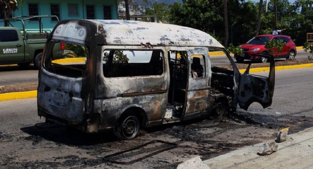 En la zona poniente de Acapulco, pistoleros interceptaron una Urvan de servicio de transporte colectivo y la quemaron. A pesar de que había cámaras de seguridad en el área, no se tiene identificados a los agresores, quienes desaparecieron en cuestión de minutos.