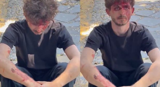 En las imágenes se le observa visiblemente afectado, con manchas de sangre en la cara, mientras explica que fue atacado sin motivo aparente.