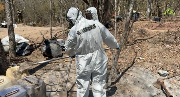 Topolobampo, Sin.- La Secretaría de Marina a través de la Armada de México, por conducto de la Octava Zona Naval, informa que en días pasados, elementos navales en coordinación con personal de la Fiscalía General de la República (FGR) localizaron y neutralizaron un laboratorio clandestino dedicado a la producción de metanfetamina, en inmediaciones del poblado Las Juntas, municipio de Mocorito, Sinaloa.