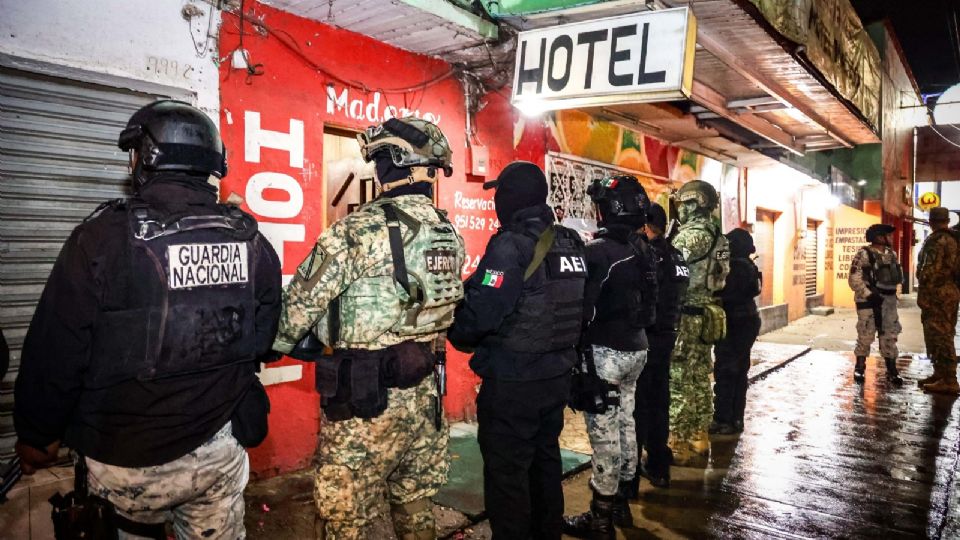 En la capital de Oaxaca, el hotel Madero fue escenario del operativo en el que participaron más de 50 elementos de la Secretaría de la Defensa Nacional (Sedena), Guardia Nacional (GN) y Policía Estatal.