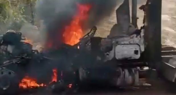 Los informes señalan que los sicarios de ese grupo criminal conformado por el Cártel Michoacán Nueva Generación, Los Viagras y Los Blancos de Troya, obligaron al chofer a descender de la unidad de carga y tras amenazar al operador, le prendieron fuego en esa zona de la Tierra Caliente.