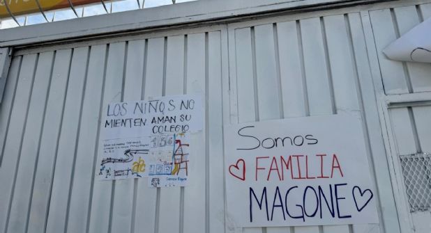 El sábado 18 de abril, familias cuyos hijos estudian en el colegio Carrusel Magone acudieron a la institución a colgar una manta con su postura, donde pidieron que se investiguen las acusaciones pero que no se hagan juicios anticipados. Además, colgaron dibujos realizados por sus hijos sobre su experiencia en la escuela.