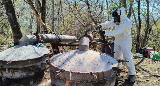 De acuerdo con el reporte oficial, el sitio contaba con amplias áreas de operación y equipo especializado, entre ellos dos reactores de 500 litros, dos condensadores de 200 litros, tambos, bidones, cilindros de gas LP, motogenerador, bombas sumergibles, quemadores y herramientas de mezclado, los cuales fueron inhabilitados en su totalidad para evitar su reutilización.