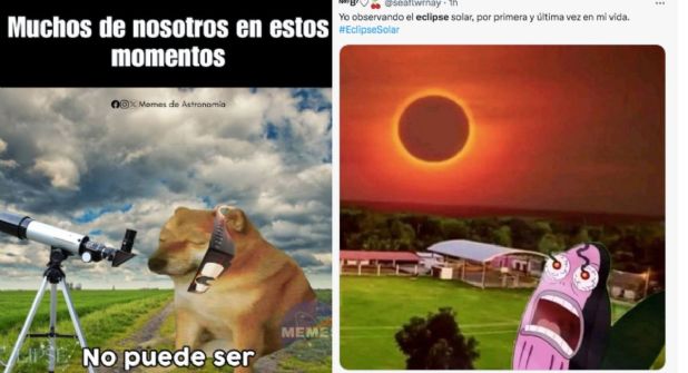 Pero como era de esperarse, el humor mexicano no puede faltar en cualquier evento que suceda en el mundo y por ello, recopilamos para ti los mejores memes del eclipse solar 2023 para que en lo que esperas, puedas soltar una que otra carcajada, solo recuerda que si observarás el eclipse solar, deberás hacerlo con una lentes especiales para ver eclipse solar que cumplan con certificación de seguridad ISO 12312-2, si no cuentas con ellos, entonces ve la transmisión en la página de la NASA dando clic aquí.