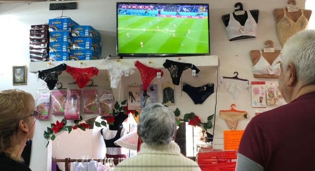 En la zona peatonal los boleros se disponían a escuchar el juego narrado por los comentaristas, pero no había zapatos que pulir y solo su atención se contemplada en un partido, entre un México y Polonia, sin goles. Una familia, sentada debajo de un árbol con su pequeño hijo, veía el partido de fútbol en una transmisión por Facebook que sugería la entrada a otro link, escuchaban la narración del “Perro” Bermúdez, su último mundial como comentarista.